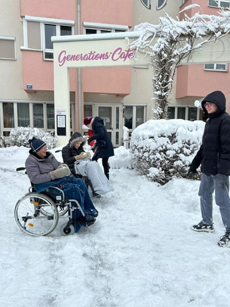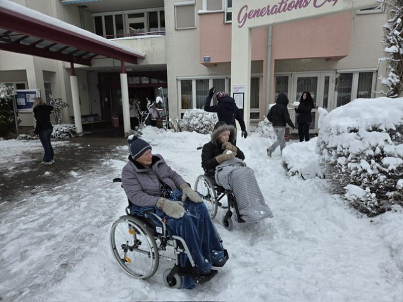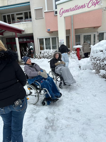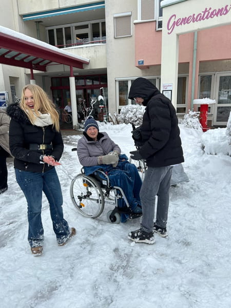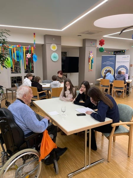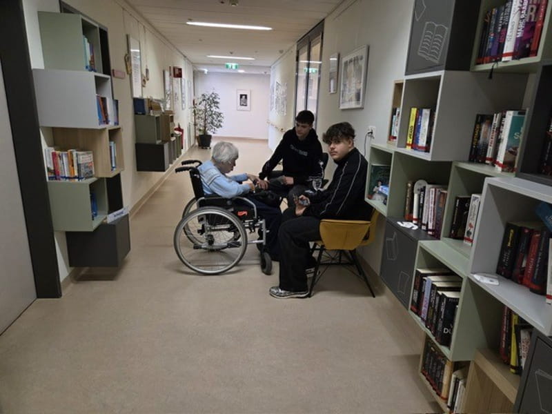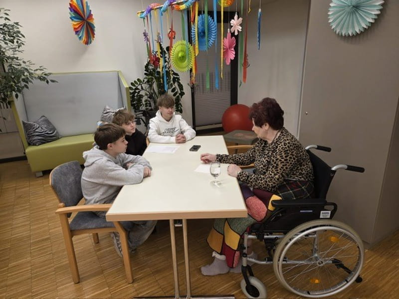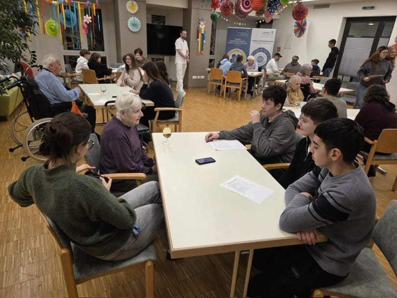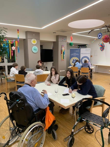 Bereits im Unterricht bestens vorbereitet, bildeten unsere Schülerinnen engagierte Zweierteams und tauchten vor Ort in die bewegenden Lebensgeschichten der Hausbewohner*innen ein. Es wurde interviewt, gelacht, aufmerksam zugehört und fleißig mitgeschrieben. Dabei entstanden nicht nur spannende Gespräche, sondern echte Begegnungen zwischen Generationen – voller Respekt, Wertschätzung und Staunen.