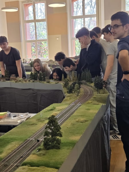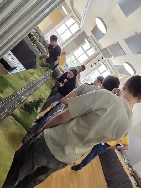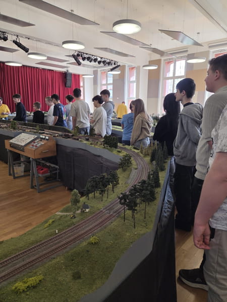 Gemeinsam mit Herrn Dvorak vom Verein erkundeten unsere Schüler die Ausstellung und staunten nicht schlecht über die riesigen, detailverliebten Anlagen. Mit viel Begeisterung erklärte er, wie die Modelle aufgebaut wurden, wie alt sie sind und wie anspruchsvoll es ist, diese in perfektem Zustand zu halten.