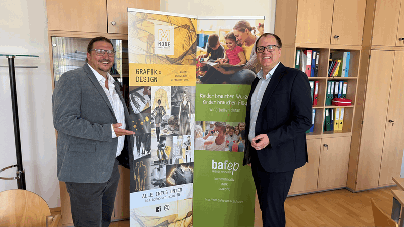 Wir haben im Zuge unserer Chancenoffensive eine weitere Partnerschule gewinnen können. Eigentlich sogar 2 Schulen.Die Modeschule Wr. Neustadt mit ihren kreativen, wirtschaftlichen Fokus und aus der elementaren Bildung die Bildungsanstalt für Elementarpädagogik. Wir freuen
