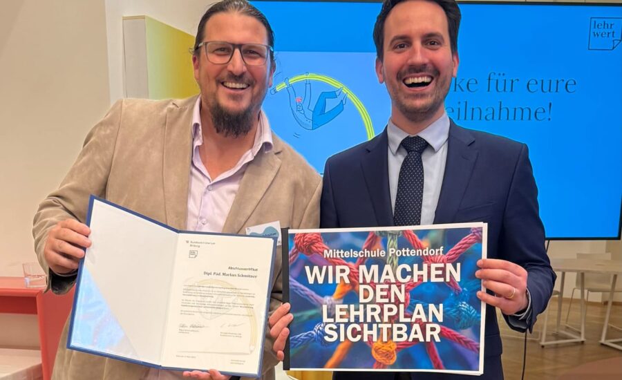 Präsentation der Kooperation Landespflege- und Betreuungszentrum mit der Mittelschule Pottendorf wird dem Bildungsminister Wiederkehr vorgestellt! Heute durfte ich erfolgreich die **LehrWert Leadership Journey** abschließen. Dabei hatte ich die Möglichkeit, mich mit über 50